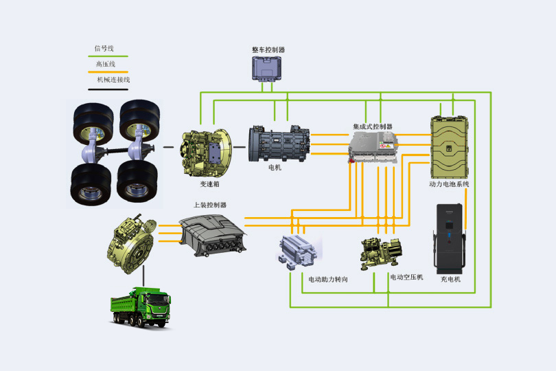 匹配AMT变速箱+电动化底盘专用桥,确保电机工作在最优工作区,电机效率更高。